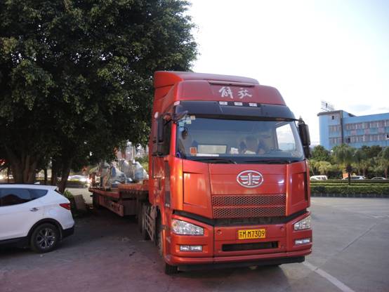 小心把設(shè)備放上貨車,排放整齊
